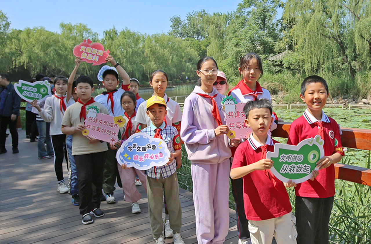东城区妇联联合区园林绿化局开展“小小游人监督员”、“小小护绿员”活动,并为参与活动的儿童颁发“小小游人监督员”、“小小护绿员”聘书、袖标,邀请他们为推进儿童友好公园建设建言献策。组织开展了“小小游人监督员”、“小小护绿员”实践活动,由柳荫公园管理处专业老师带领孩子们进行文明游园宣传;开展树木抚育劳动,以“一米高度”“一米视角”助力花园城市建设。“小小游人监督员”、“小小护绿员”携手发挥优势特长,贡献智慧和力量,代表儿童群体发声,以实际行动带动更多市民参与花园城市建设,为打造更加美丽、宜居的城市环境而不懈努力,倡导儿童参与融入城市社会生活,营造儿童友好社会氛围,让公园成为展现城市文明的窗口。