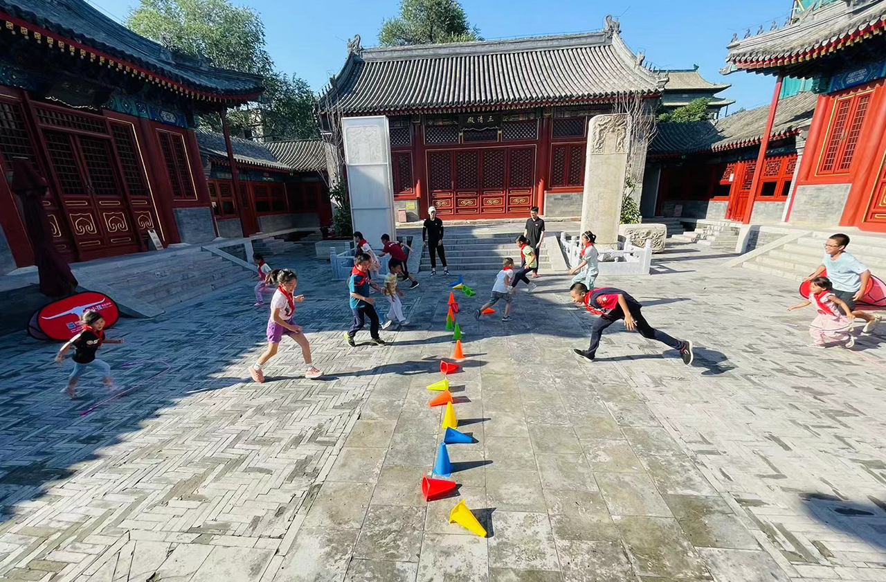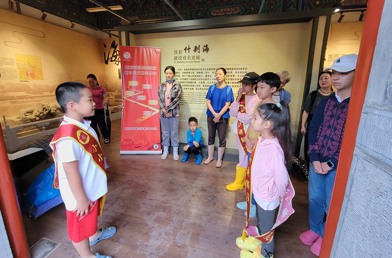 中心围绕儿童成长与家庭参与,构建“五育六艺”综合培养体系,依托传统文化大讲堂、临展厅及院落空间,每周开展 4–6 次儿童主题活动,逐步形成以儿童为纽带、链接家庭参与的建设模式。在活动内容上,中心推出“中轴线小小讲解员”“中轴童声合唱团”等品牌项目,并结合古琴欣赏、科普讲座及扎染、漆扇等非遗手作体验,拓展儿童文化认知与实践能力。在资源保障方面,中心邀请什刹海文化学者、国科大科学家等 60 余位专家参与授课,持续提升课程质量与专业性。其中,“中轴线小小讲解员”活动已连续开展四季、累计 40 余期,吸引辖区内 280 余名中小学生参与中轴线与大运河文化学习,相关成效获新华网、中央电视台等媒体报道,小讲解员更曾登上央视《朝闻天下》栏目,形成广泛社会影响与育人示范效应。
