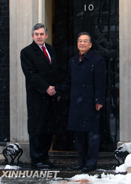 新华网伦敦2月2日电(记者 李诗佳 黄泳 何大隆)国务院总理温家宝2日在伦敦唐宁街10号首相府与英国首相布朗举行会谈,双方就中英关系、携手应对国际金融危机和共同推进国际金融体系改革坦诚、深入地交换了意见,达成广泛共识。会谈后,双方还共同会见了记者。