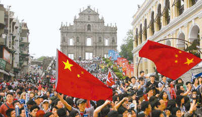 5月3日,观众为奥运圣火传递活动加油。当日,北京奥运圣火传递活动在澳门举行。