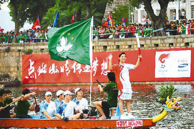这是澳门开埠400多年以来首次迎接奥运圣火。澳门检察院检察长何超明感慨万分地说:“有幸见证奥运圣火在澳门传递,是澳门居民的骄傲和光荣。北京奥运圣火之所以能在澳门这座小城传递,只有在澳门回归祖国之后才可能有,表明国家对澳门特别行政区的重视,是澳门随着国家的强盛才得以实现的梦想。”