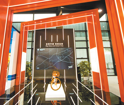 图为“互联网之光博览会”上展示的最新科技成果:共享单车在智慧交通领域广泛应用。(本报记者 何鼎鼎摄)