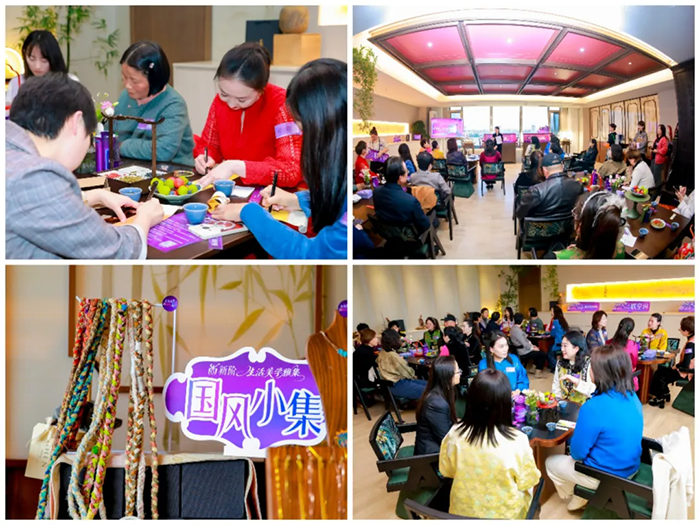 在“国风小集·趣体验”环节,参与者通过点翠、草木染、宋锦盘扣等非遗手作,沉浸式感受传统文化的独特魅力。在“盲盒奇遇·幸相识”环节,通过盲盒互动建立情感链接,展现跨界交流的奇妙碰撞。在“茶韵诗笺·美谈会”环节,嘉宾们以茶会友、以诗为引,围绕生活美学、职场成长、自我疗愈等话题展开对话,碰撞思想火花。在“美之图鉴·故事汇”环节,来自影视、非遗、教育、古琴等领域的四位女性代表,以故事分享女性力量的多维表达,并现场沟通合作意向,在交流中汲取力量与启发。