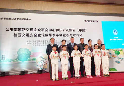 为提高少年儿童交通安全法制观念和安全意识,普及交通安全知识,提高少年儿童的交通安全自我保护能力,10月14日上午,由公安部道路交通安全研究中心、沃尔沃集团(中国)、北京市妇儿工委办公室、东城区妇儿工委办公室、东城区教委联合举办的“校园交通安全宣传成果发布会暨志愿者行动”走进崇文小学,为孩子们带来一堂生动的交通安全宣传教育课。北京市妇儿工委办公室常务副主任周静、东城区妇联主席杨立萍、东城区教育督导室副主任段勇出席活动,来自公安部、沃尔沃集团高层的领导及崇文小学近百名师生参与。