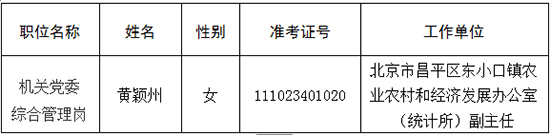 经北京市2025年度公开遴选公务员工作有关程序,确定黄颖州同志为北京市妇联机关拟遴选人员,现按规定予以公示,公示期为5个工作日。公示期间,如对拟遴选人员有异议,请向北京市妇女联合会组织部反映。
