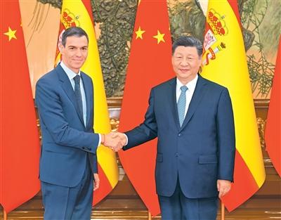 习近平强调,当今世界乱象丛生,面临公理和强权的较量。如何对待国际法和国际秩序,反映的是一国的世界观、秩序观、价值观和责任观。中国和西班牙都是有原则、讲道义的国家,应该加强沟通、巩固互信、紧密合作,反对世界倒退回丛林法则,共同捍卫真正的多边主义,维护以联合国为核心的国际体系和以国际法为基础的国际秩序,推动实现平等有序的世界多极化、普惠包容的经济全球化,推动构建人类命运共同体。