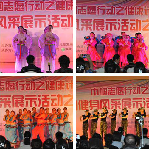 在伦敦奥运会火热进行之际,全民健身的热情与奥运同行,掀起阵阵热潮。由市妇联和北京妇女儿童发展基金会主办,宝健(中国)日用品有限公司承办的巾帼志愿行动之健康计划--巾帼健身风采展示活动首场预赛于8月5日火热开赛。市妇联副主席周志军、宣传部部长王健,北京妇女儿童发展基金会秘书长朱龙兴,各区县妇联主席和宣传部部长、参赛队的“啦啦队”成员等近600人观看大赛。周志军同志代表市妇联向“宝健巾帼志愿服务队”授牌,并期望他们能够继续发扬志愿服务精神,更好地为广大妇女姐妹提供服务。