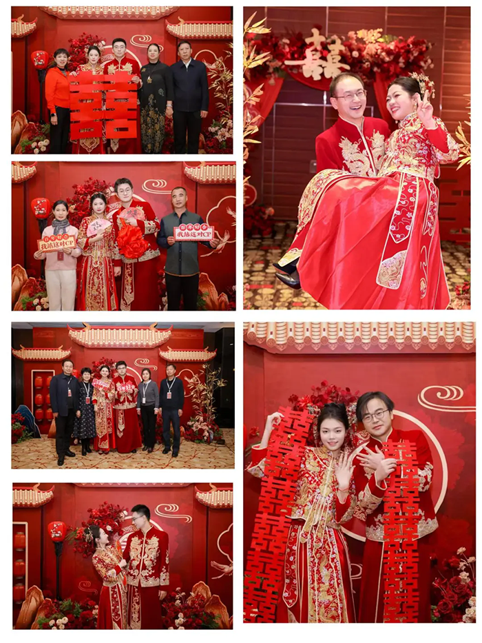 婚礼现场布置典雅温馨,融合传统婚仪与现代情感表达,营造出浓厚的文化氛围与仪式感,彰显着婚礼的喜庆、热烈与祥和。现场设置的互动拍照区是新人的“幸福打卡点”,新人与亲友笑意盈盈入镜,快门声中捕捉下一幕幕幸福场景,温馨的美好时光悄然定格。