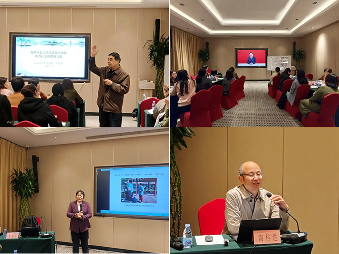 北京大学社会学系教授、中国社工学会会长王思斌讲授《发挥社会工作增进民生福祉助力社会治理的作用》;北京师范大学教授、博导陶传进讲授《ST理论与社会服务工作的专业化(涵盖家庭教育主题)》;中央党校(国家行政学院)教授丁元竹视频讲授《党的二十届四中全会精神专题——加大保障和改善民生力度完善社会治理体系》;石景山区八角中里社区书记、党的二十大代表李美红作《如何做好群众工作》案例教学;市妇联社会工作部负责同志、北京七悦社会公益服务中心相关人员围绕社会工作理念开展教学。
