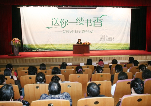 沈洁副主席在活动上讲话,并向大家介绍了女性读书主题活动的基本情况。此项活动有三项内容,一是经典诵读。利用大众读书会、益民书屋等公共文化服务设施,组织各行各业女性、社区居民开展诗歌朗诵会、演讲比赛等形式新颖、寓教于乐的读书活动。二是推荐、自荐书籍。通过北京妇女网定期向广大市民和家庭推荐优秀书目;广大妇女和家庭也可选取对自己影响较大、感受较深的书籍,并写出读书心得。市妇联将在北京妇女网的读书专栏上登载优秀的心得体会,并予以评选奖励。三是专家讲坛。依托首都图书馆、爱家广播电台等传播平台,贯穿全年举办女性大讲堂系列讲座,倡导普及科学、文明、健康、和谐的生活方式和生活理念。