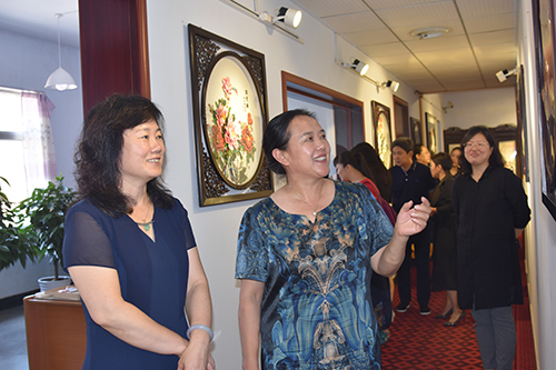 会后,怀柔区巧媳妇合作社社长郑秋伶为丰宁当地的姐妹们带来了实用编织技艺培训,参加培训的80余名丰宁农村妇女姐妹纷纷表示,“感谢妇联娘家人给我们送技术上门,让我们又掌握了一门新的技术,我们要好好练习,将来依靠这门手艺增收致富!”怀柔区妇联一行随后参观了当地巧娘工作室—丰宁县滕氏布糊画博物馆,了解当地妇女姐妹们巧手制作创业情况和当地布糊画产业发展现状及需求等,当看到姐妹们巧夺天工的技艺时,帮扶团一行被深深震撼。