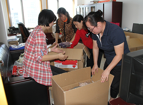 9月6日,西城区妇联全体领导干部聚在一起、干劲十足,大家在为青海省玉树藏族自治州囊谦县的困难儿童打包编织好的毛衣和帽子。一上午时间,370件毛衣和260顶帽子分别打包装箱,带着北京市西城区各界妇女姐妹的心意即刻发往青海玉树囊谦县。