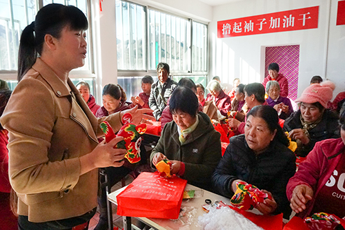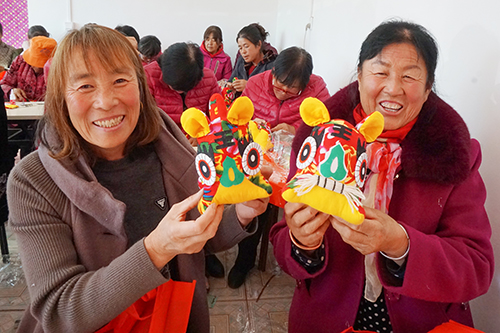宝山镇巧媳妇合作社社长郑秋伶给大家讲解了布老虎的制作、填充、缝合技巧,大家开始动手装饰布老虎,不一会,结实的身子、炯炯有神的大眼睛、额头威严的“王”字,一只只虎虎生威、活灵活现的布老虎就在姐妹们的巧手下制作完成了。看着自己的劳动成果,姐妹们高兴地说:“希望以后能多举办这样的培训,在提高手工技巧的同时,更能利用闲暇时间实现居家灵活就业,不出家门就能脱贫致富。”