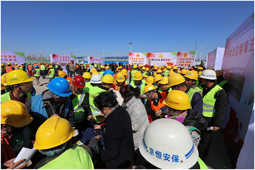 为深入贯彻习近平新时代中国特色社会主义思想,全面贯彻落实党的十九大精神、中央党的群团工作会议精神和依法治国基本方略,3月22日,通州区总工会主办,区人社局、区司法局、区安监局、区妇联、区文旅区管委会协办的“尊法守法,携手筑梦”农民工法律宣传活动在北京环球度假区施工现场启动。