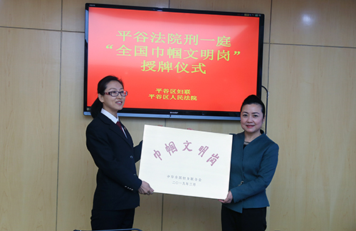 日前,北京市平谷区人民法院刑事审判第一庭和国家税务总局北京市平谷区税务局第三税务所被全国妇联授予全国巾帼文明岗称号,近日,平谷区妇联为两个全国巾帼文明岗授牌。