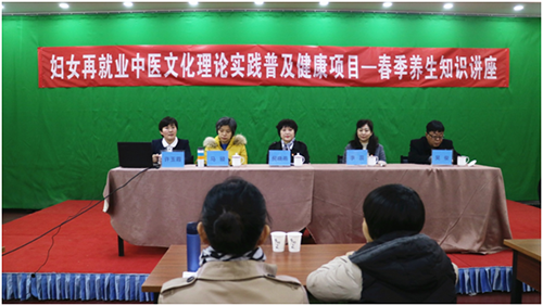 区妇联先关负责人在讲话中表示,创新创业是当今的主题,促进妇女创新创业是妇联组织服务执政大局、服务国家改革发展、服务社会民生的重要工作。区妇联紧紧围绕妇女姐妹所需,根植于妇联所能,通过发现并挖掘中医治病的重要性与可靠性,链接资源、搭建平台,引导姐妹们创业的热情,激发姐妹们的潜能,从而提高生活品质。她同时提出三点希望,一是珍惜学习机会,努力学习、认真思考,向老师学习,向身边的姐妹学习;二是学有所获,掌握中医等理论知识,并运用到今后的生活和工作中,从而提升自我就业技能;三是拥有健康生活,以此次讲座为契机,引导形成健康的生活理念,拥有更加幸福的生活,为北京城市副中心发展做出巾帼贡献。潞城镇妇联相关负责人向学员们介绍了镇政府提出的“家工程”及“家安、家兴、家和、家美”四个子项目建设内容,强调镇妇联要加强妇女姐妹们的就业技能培训,不断完善综合素质,做好充分准备,争取成为副中心建设的中坚力量。此次活动得到了来自丹墨书院老师们的支持,他们从春季中医养生知识、中医足浴用中药的手工配制等方面向在场人员进行了讲解与指导,对大家产生的疑问进行面对面的详细解答。