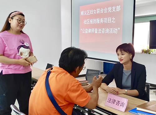 顺义区妇联组织机关党员干部到社区开展公益普法主题党日活动