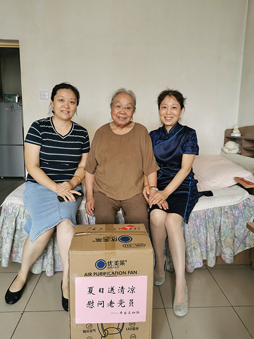 为庆祝中国共产党成立98周年,按照丰台区妇联党支部开展“不忘初心、牢记使命”主题教育安排,7月15日、16日下午,丰台区妇联党组书记、主席姜萍一行来到退休党员于砚霞和老妇联代表蔡菊芳家中,给她们送去了党组织和妇联的关爱和问候,为她们带去了生活必需品。