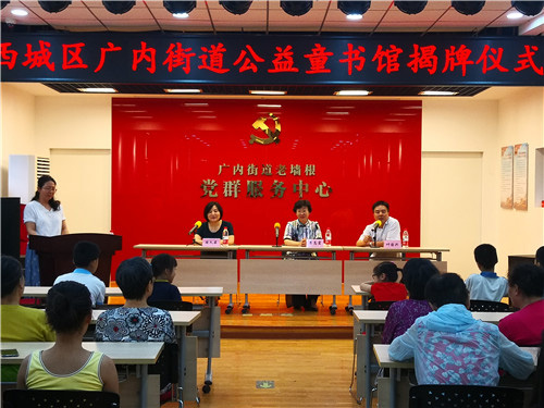 为深入贯彻落实党中央、国务院关于开展全民阅读的重要部署,提升国民素质和社会文明程度,有效普及儿童早期阅读,北京市妇女儿童社会服务中心联合西城区妇联、区妇女儿童发展中心共同成立的西城区首家“公益童书馆”于8月2日上午在广内街道党群服务中心举办揭牌仪式。广内街道辖区的部分家庭和社区居民参加揭牌仪式。