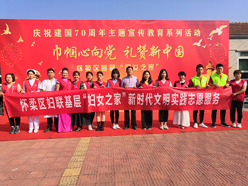 在喜迎新中国成立70周年之际,由怀柔区妇联指导,区新领域“妇女之家”共同参与的“巾帼心向党 礼赞新中国”主题宣传教育系列活动在桥梓镇后辛庄村举行。本次活动结合妇联系统新时代文明实践中心志愿服务工作,引领广大妇女共同唱响巾帼之歌、彰显巾帼之美。