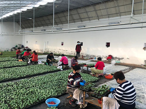 北京建平蔬菜产销合作社年初承接了500万株蔬菜种苗的艰巨任务。合作社为姐妹们解决了防疫物资保障的后顾之忧,保证了按时育苗生产,有序输送,不耽误各订购单位的蔬菜种植,全力以赴保障蔬菜秧苗的市场供应。