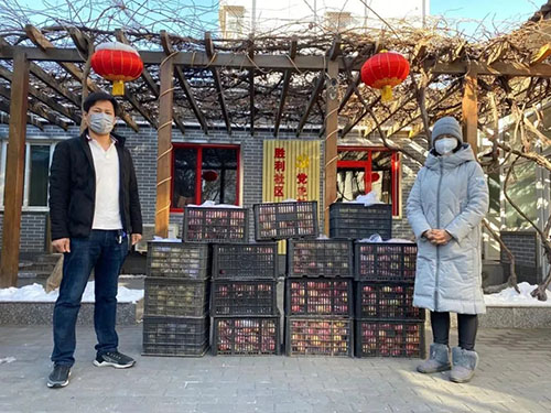 北京硕丰磊白山药产销专业合作社会员代表在元宵节当天为东府村和西府村各送去60袋水饺和汤圆,并向西府村村委会捐赠一万元现金,用于助力防疫工作。