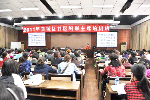 为进一步更新广大社区妇联主席的思想观念、提升创新水平和实践能力,9月13日,东城区妇联举办了“2011年东城区社区妇联主席培训班”。来自全区十七个街道、社区妇联主席240余人参加了培训。