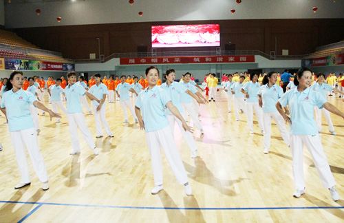 巾帼健身示范队集体展示妇女健身操