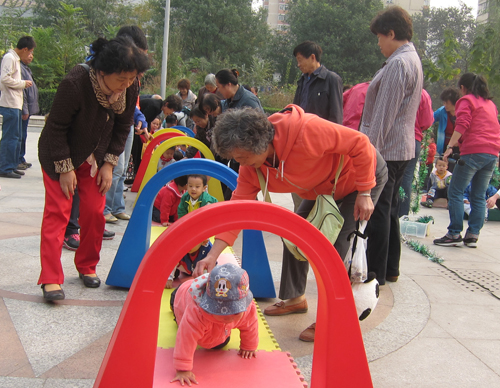 10月25日,海淀区紫竹院街道妇联联合明天百合花幼儿园在车南里社区文化广场举办了一场别开生面、充满趣味的亲子活动。活动内容有钻山洞、虎宝宝过河、过独木桥、吹泡泡等游戏。