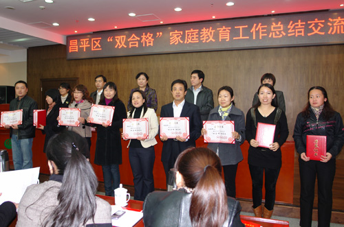 为总结昌平区三年来家庭教育工作,交流家庭教育工作经验,表彰家庭教育工作中涌现出的先进集体和个人,11月16日,昌平区妇联、区教委、区文明办联合召开了昌平区“双合格”家庭教育工作总结交流会。会上,区妇联副主席刘焕春同志总结了全区三年来的家庭教育工作;表彰了20个优秀家长学校和100名“双合格”好家长,其中城北中心小代表优秀家长学校做了题为“以课题为引领,提高家长学校质量”的典型发言,区社工委袁燕平同志代表“双合格”好家长做了题为“重方法、抓素质,营造和谐美好的成长环境”的典型发言。