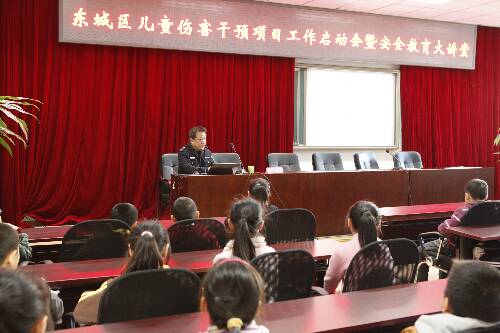近年来,儿童的意外伤害问题日渐凸显,儿童因交通、溺水、窒息、跌伤、动物咬伤等构成的伤害已成为我市儿童死亡的首要原因,越来越引起各级政府的高度关注。为“保护儿童,远离伤害”,东城区妇儿工委启动实施了儿童伤害干预项目。12月9日,东城区妇儿工委在体育馆路小学召开了“儿童伤害干预项目工作”启动大会。会上,东城区教委副主任刘藻同志宣读了该项目的实施方案,明确了相关责任单位和具体工作职责;区教工委副书记刘顺利同志宣布了包括街道、中小学校、幼儿园在内的首批20个试点单位名单;区妇联主席杨立萍同志宣布项目正式启动。东城区儿童伤害干预项目到2014年将实现街道、学校的全覆盖。北京市交管局安全监督处的郝满良作为该项目的市级专家为在场的百余名小学生上了一堂生动的安全教育课,大量的事例和触目惊心的真实案件让学生们倍受教育,至此也拉开了东城区安全教育大讲堂活动的序幕。会议由区妇联副主席尹向敏主持,区相关委办局、街道、实验单位的领导和部分学生参加了启动会。