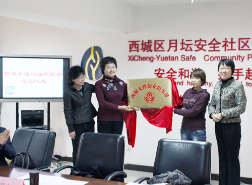 近日,西城区妇联依托月坛街道妇女儿童维权服务站成立了“西城女性创业俱乐部”。区妇联、月坛街道、区人力社保局劳动服务中心等单位领导和20名创业妇女代表参加了成立仪式。