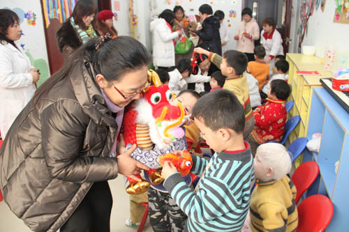委员们为孩子们带来龙年吉祥物,并与孩子们一起互动