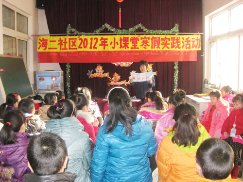 为落实区妇联关于做好“枢纽型”社会组织工作,参与社会管理创新对社会组织的服务管理,2月3日至12日,石景山区苹果园街道海二社区妇联开展了中小学生“寒假生活小课堂”体验活动,把寒假期间因父母上班在家无人管理的学生和志愿参与体验活动的学生集中起来,由社区妇联统一管理,参加社区组织的“生活小课堂”互动活动。