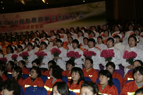 3月6日,东城区庆祝“三八”国际劳动妇女节98周年暨迎奥运誓师大会在东城区少年宫剧场隆重举行。市妇联领导、东城区四套班子领导,东城区各族各界、各行各业的妇女代表共600余人出席了誓师大会。