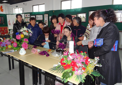 丝网花制作台前学员多
