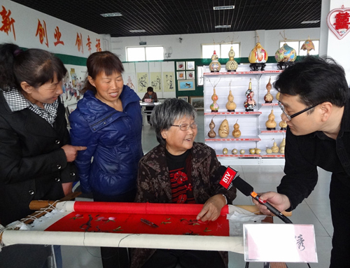 北京电视台记者采访刺绣巧娘