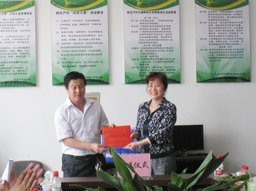 全国妇联国际部副部长牟虹向顺义区柳庄户村妇女之家捐赠活动经费