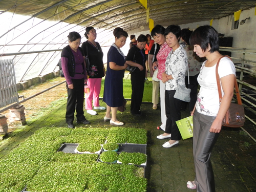 9月19日,门头沟区部分女政协委员和区妇联机关干部一行18人来到丰台区妇字号基地--北京绿山谷芽菜种植基地参观考察。基地负责人向女政协委员们介绍了基地的发展情况和芽苗菜的种类及种植的方法,让大家对基地有了较为全面的了解。随后女委员们到芽苗菜种植大棚进行实地参观,与大棚里的技术人员进行交流,询问了芽苗菜种植的技术。女委员们纷纷表示,这次参观使大家深受启发、开阔了眼界,有几位女委员还从基地购买了许多芽苗菜种子,准备回去以后在自己的大棚里先搞一些试种,成功后再带动周边的农户种植。