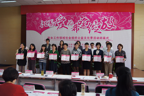 在市妇联开展的“汇聚爱 为希望绽放”公益文化季活动中,石景山区妇联获优秀组织奖,并到会作典型发言。“首钢留守家庭关爱行动”项目被评为北京市妇女工作领域社会组织“优秀公益服务项目”。