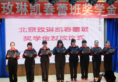 11月19日,玫琳凯“春蕾助学”奖学金发放活动在北京市五十六中学礼堂举行,40名来自西城区五十六中学和北京市教育学院宣武分院附属中学的品学兼优的女生得到奖学金。出席捐赠仪式的有中国儿童少年基金会项目管理部胡文新主任、市妇联副主席王淑存、北京妇女儿童发展基金会秘书长朱龙兴,以及西城区妇联主席薛湘丽,区教委副主任、工商局副局长张建新,玫琳凯(中国)化妆品有限公司北京分公司经理何晓彤、江磊等。