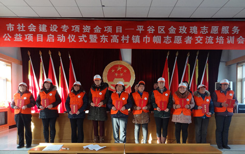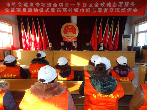十八大报告提出了“在创新社会管理中加强社会建设”,平谷区妇联积极发挥枢纽型组织作用,落实十八大精神,助力幸福平谷建设,在加强社会管理创新方面发挥金玫瑰志愿者作用,在全区开展了重点服务688名空巢老人的金玫瑰志愿服务活动。12月4日,市社会建设专项资金项目--平谷区金玫瑰志愿服务公益项目在东高村镇启动,100余名金玫瑰志愿者参加了启动仪式。启动仪式现场为西高村妇代会主任艾久春颁发首都巾帼志愿者之星证书、为南宅庄户金玫瑰志愿者服务队发放首都巾帼志愿服务优秀团队奖牌,为东高村镇金玫瑰志愿者服务队授旗,为金玫瑰志愿者代表发放荣誉证书。该项目将通过先期启动、全面推进、总结表彰等三个阶段组织全区5000余名金玫瑰志愿者深入开展“促社会和谐”金玫瑰人文志愿行动、“倡学习风尚”金玫瑰科技志愿行动、“创幸福生活”金玫瑰绿色志愿行动,从而在全区形成村村有巾帼志愿者、天天有志愿服务活动的发展态势,确保每名空巢老人都有人联系、有人帮助、有人关爱,以实际行动促进社会人文环境的幸福和谐。