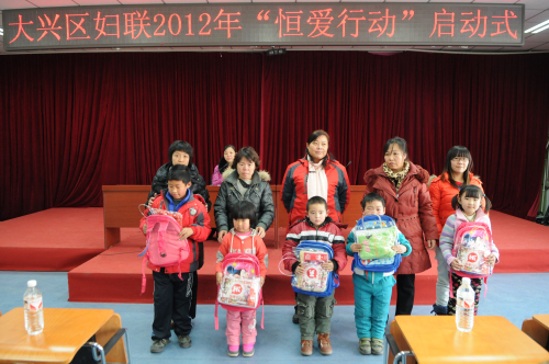 “恒爱行动”项目是大兴区妇联开展的扶贫济困活动之一,旨在通过妇联组织寻找社会各界爱心人士为贫困、孤残儿童编织爱心毛衣,这也是此项活动在大兴开展的第五年。启动仪式上,爱心妈妈们亲手将爱心毛衣和学习用品送给孩子们,受助儿童代表和爱心妈妈代表分别讲话,表达了自己参与恒爱行动的感受。张伟同志向爱心妈妈们发放了毛线,并对2012年即将开展的工作提出了希望,希望各级妇联干部提高扶贫济困工作的认识;希望有更多的单位和爱心人士共同营造扶贫济困社会新风尚;希望同学们努力学习,建立自信,战胜困难。