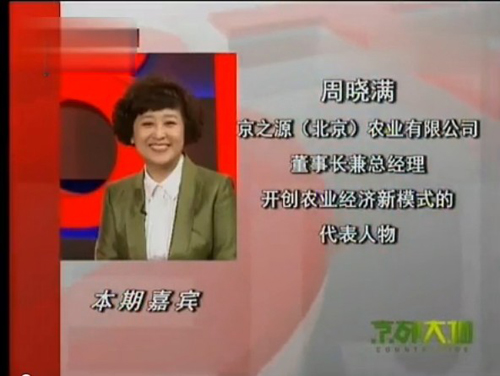 京之源(北京)农业有限公司董事长兼总经理周晓满做客节目现场,节目中介绍了房山区的女企业家张士英、延淑洁、陆彤、马小兰和张莉华等人的创业故事:张士英,房山区第一个敢跟世界顶级红酒叫板的人,用“要做就做最好的红酒”的坚强态度,与红酒专家邹老组成老少搭档,共同向中国的顶级红酒迈步,这一对老少组合创建了全新的红酒产业篇章;延淑洁,用自己包容的智慧创造了一座全现代化的蘑菇王国;陆彤,吃玫瑰宴、品玫瑰酒、尝玫瑰花、用玫瑰露,她把美丽的事业做到了世界;马小兰,房山区纸制品包装行业的领头人,她的“集中制版,分散制箱”的经营理念,形成了再生资源分捡回收-纸品生产-包装制品-包装印刷的循环经济产业链;张莉华,巧姑靓嫂带头人,打响了“巧姑靓嫂”的品牌,将巧娘们的作品销往世界。她们直接和间接带动了5500多农民的就业和再就业,她们是众人眼中的美女老板,是雷厉风行的实干派。