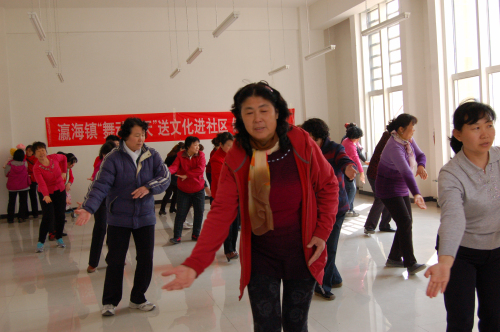 在老师的带领下,和着音乐的节拍,姐妹们一扫往日的矜持,从基础的步法到四肢的协调配合,在欢快音乐的带动下,充分享受着舞蹈带来的轻松和愉悦。1个半小时的课程后,虽气喘吁吁,却都兴致高昂。培训课结束后,很多人还意犹未尽,继续与老师沟通交流,揣摩舞步。大家纷纷表示以前每天要干农活没有时间跳,现在拆迁了,生活条件都好了,老师也不辞辛苦来教,一定会认真学、坚持练,学会了以后每天晚上在社区里教更多的姐妹跳起来。