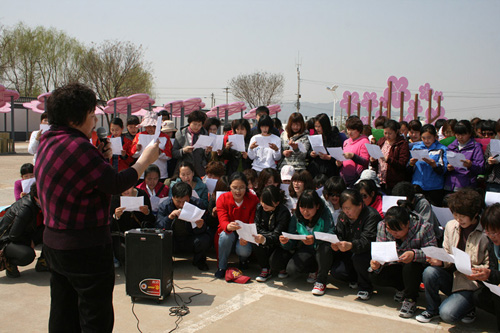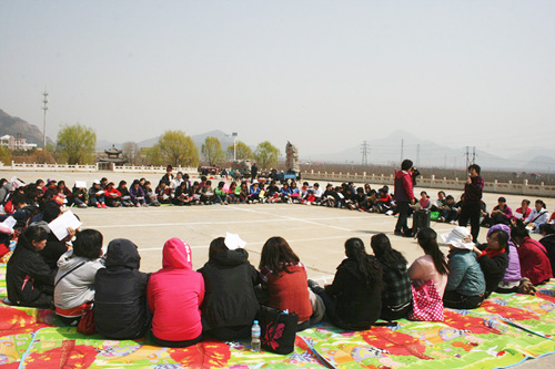 近日,平谷区妇联在平谷桃花海举办“巾帼展风采 点亮中国梦”--家庭文化建设行动之“阅读季”百人赛诗会活动,滨河街道13个社区全体社工参加。活动在气氛热烈的击鼓传花中开始了,社工们围坐成一个大圈,大红花在各个社工手中紧张地传递着,锣声戛然停止,怀中正落下红花的社工在掌声中起身为大家表演节目,有的演唱歌曲,有的朗诵诗歌,大家充满了参与热情。接着,每个社区都集体朗诵了专门为此次活动精心准备的诗词,大家还围坐一起,互相传看自己带来的各种书籍。