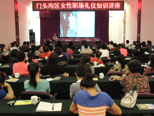 为进一步增强全区广大妇女的礼仪修养,塑造良好的女性时代新风貌,6月20日,门头沟区妇联举办了一场生动的女性职场礼仪知识讲座,来自街道、社区居委和女企业家将近130多位女性参加了讲座。