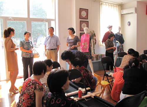 7月31日,市妇联副主席王淑存一行来到石景山区,参观了石景山区巧娘发展促进会精品展室及鲁谷社区久筑居委会的巧娘工作室。