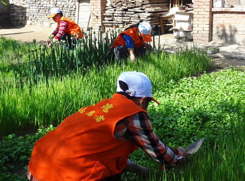 志愿者为空巢老人整理菜园
