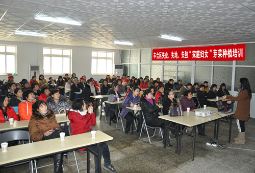 近日,丰台区妇女儿童培训中心开展喜迎“三八”系列培训活动,在丰台区王佐镇绿山谷芽菜种植基地举办失业、失地、失独妇女芽菜种植培训,来自王佐镇、长辛店镇、长辛店街道80多名妇女群众参加了此次培训。